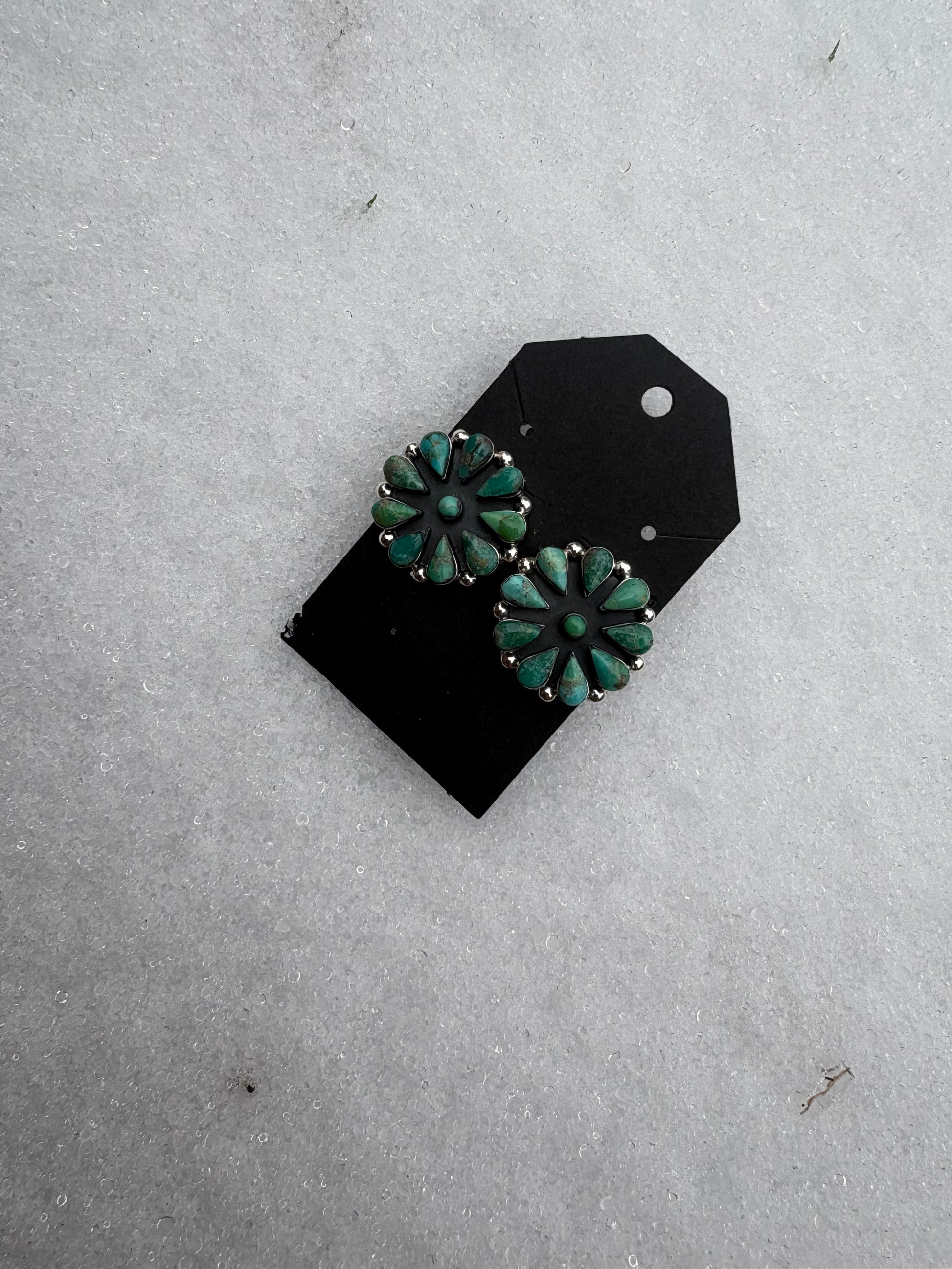 The Mesa Bloom Earrings are crafted in stamped MEX 925 sterling silver and set with genuine turquoise. Handcrafted in Mexico, each pair features natural matrix and subtle color variation, making every set one of a kind. Designed in a medium size with a lightweight feel, these earrings offer a timeless Western statement that’s easy to wear all day.